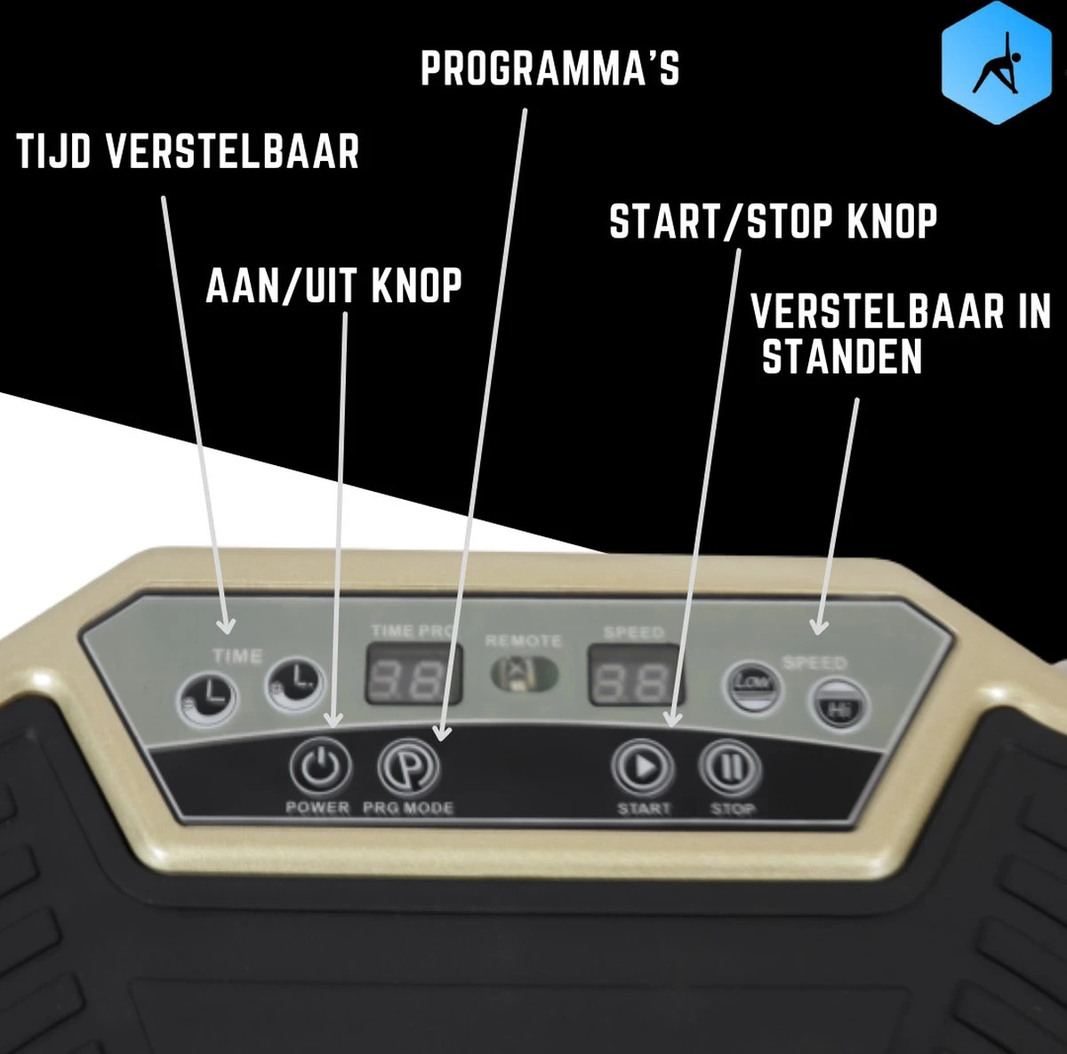Doordat er weerstandsbanden worden geleverd bij de trilplaat voegt u krachttraining eenvoudig toe! U maakt ze eenvoudig vast aan de clips onderop de trilplaat en de combinatie cardio & kracht kan beginnen. U kunt nu uw benen, billen, buik, armen, rug en schouders trainen.