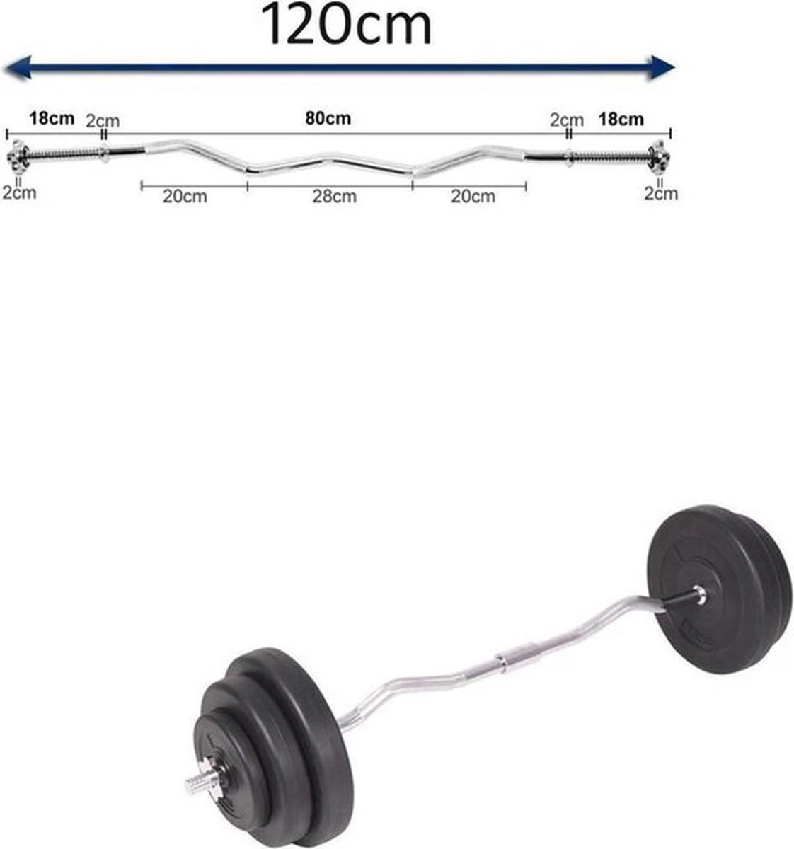 1 x STANG CURL 120cm lang (diameter 25mm , gewicht losse stang 5.2kg)