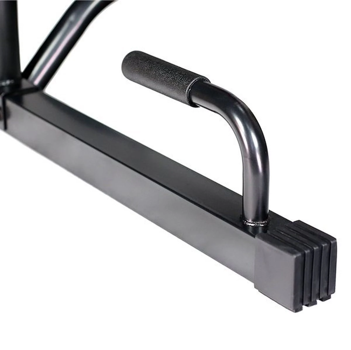 De veiligheid wordt gegarandeerd door een stabiele stalen constructie, waardoor de oefeningen soepel en comfortabel verlopen. De rugleuningen en armleuningen zijn gevuld met dicht en belastbaar schuim. Bovendien zijn de leuningen uitgerust met antisliphandgrepen, wat zorgt voor comfort en stabilisatie. Hierdoor kunt u zich volledig concentreren op de oefening die u aan het uitvoeren bent.