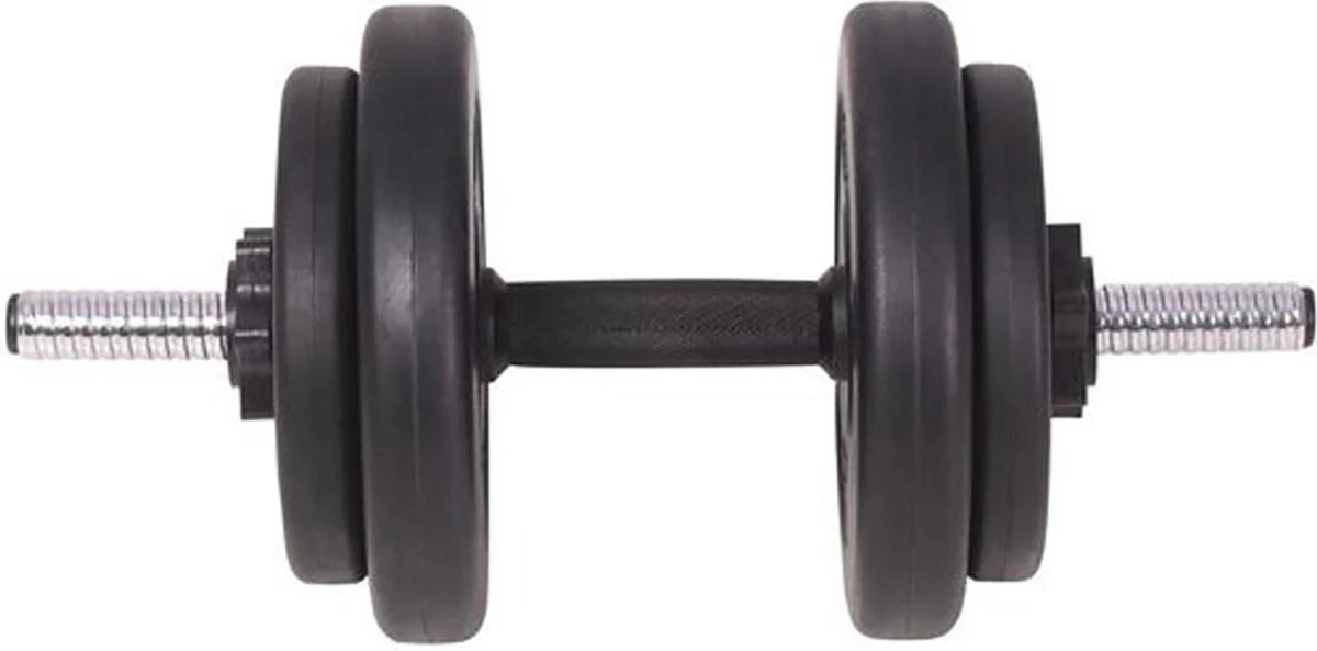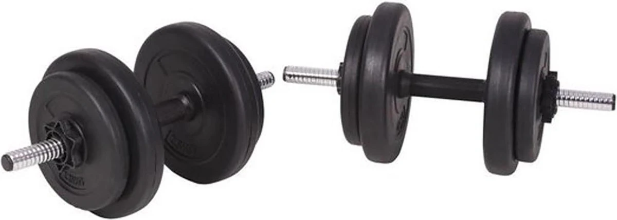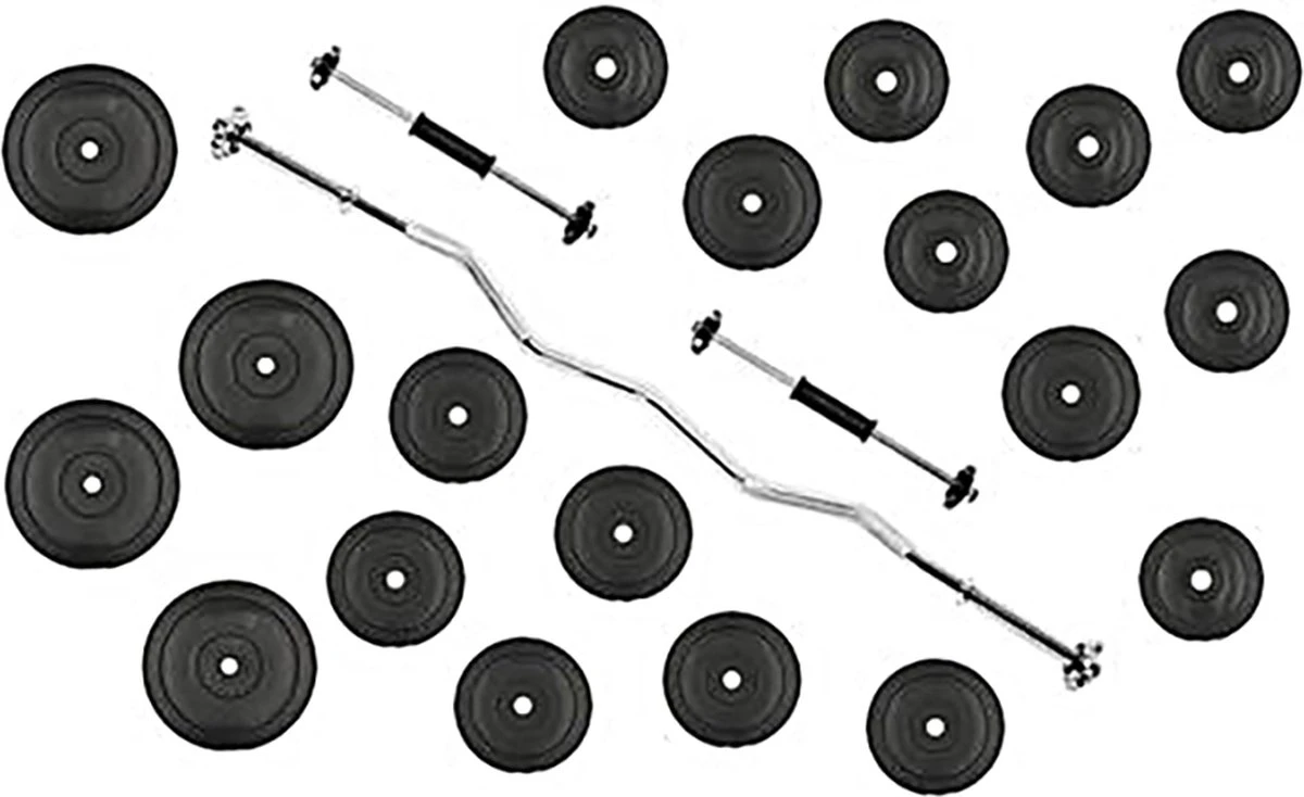 De meegeleverde halterschijven hebben een totaal gewicht van 50 kg exclusief de stangen. Met deze set kan de gebruiker zelf kiezen hoeveel gewicht hij wil tillen voor verschillende oefeningen. De schijven zijn gemaakt van cement met een kunststof huls, ze kunnen makkelijk op de halter vergrendeld worden met de meegeleverde veersloten. Het gewicht van elke schijf staat er duidelijk op vermeld, voor snelle en makkelijke identificatie.