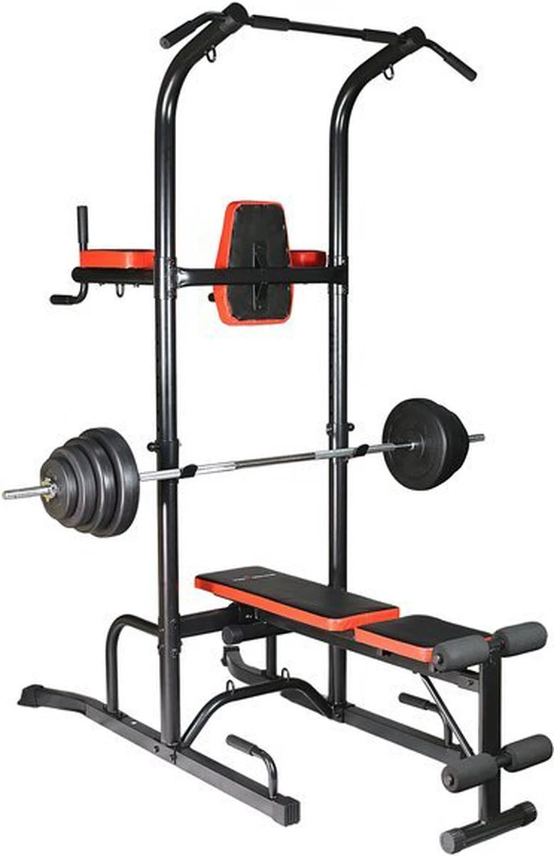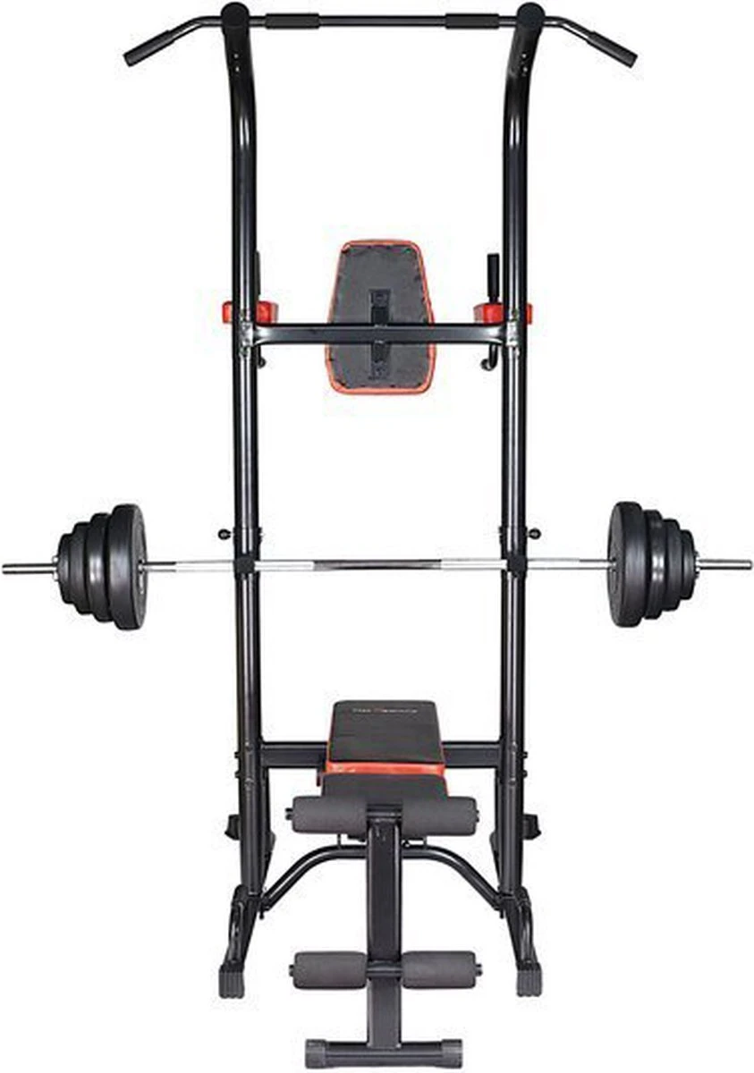De multifunctionele leuning met bank staat garant voor een afwisselende en complete training.