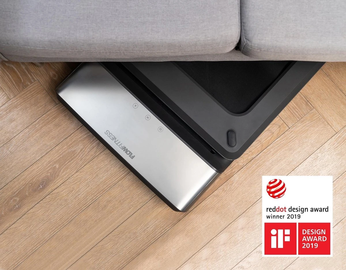 Het is de nieuwste en meest compacte loopband in het assortiment: de Flow Fitness Walker DTM100i Walkingpad Loopband. Vanaf het moment dat je de walking pad hebt gezien, weet je dat deze anders is dan andere loopbanden. De handgrepen ontbreken, je prestaties worden getoond via een LED display bij je voeten en je bedient het apparaat met een afstandsbediening. En misschien wel het belangrijkste: de Walker TTM100i is een loopband die zo compact is, dat je deze letterlijk overal kunt gebruiken én kunt opbergen.