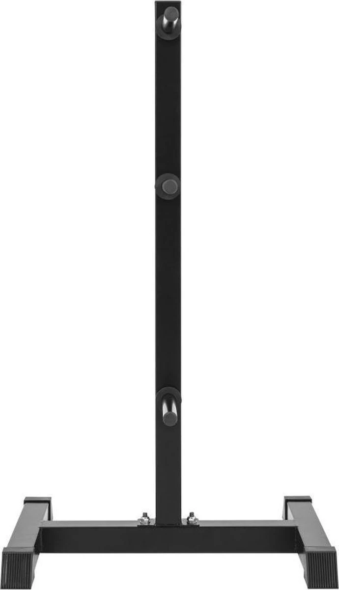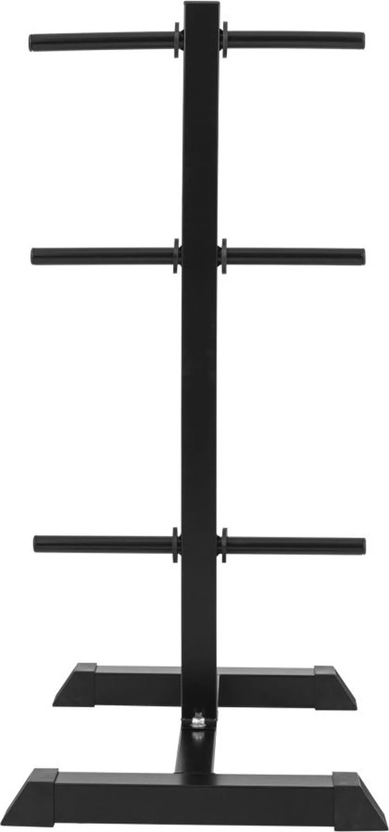 De Schijvenstandaard zwart in detail: • Boring: 30 mm • Aantal opnamestangen: 6 • Opnamegebied: 20 cm • Max. belastbaarheid: 200 kg • Max. belastbaarheid per schijvenhouder: 35 kg • Afmetingen (L x B x H) 60 x 50 x 105 cm • Gewicht: 12 kg • Geschikt voor halterschijven met een diameter van 30/31 mm