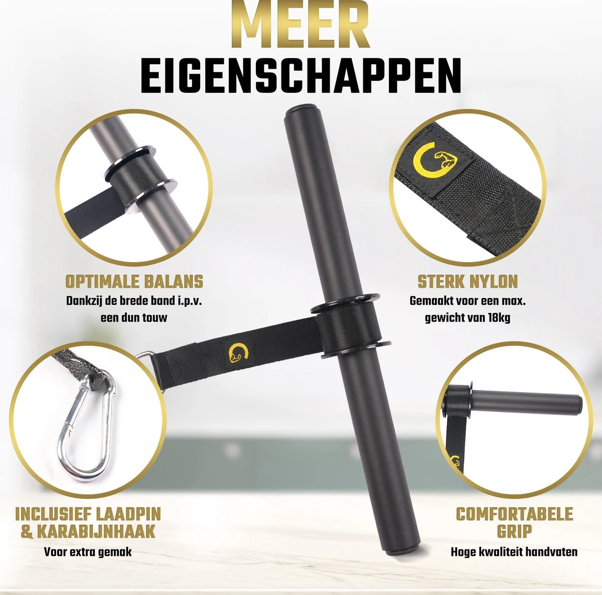 De Gouden Grip Wrist Roller heeft als extra voordeel dat het een brede band heeft. Bij de meeste wrist rollers wordt een dun touwtje gebruikt, waardoor de wrist roller zelf al gauw uit balans raakt. Een touwtje rolt namelijk niet over zichzelf heen, maar rolt naar 1 kant toe.