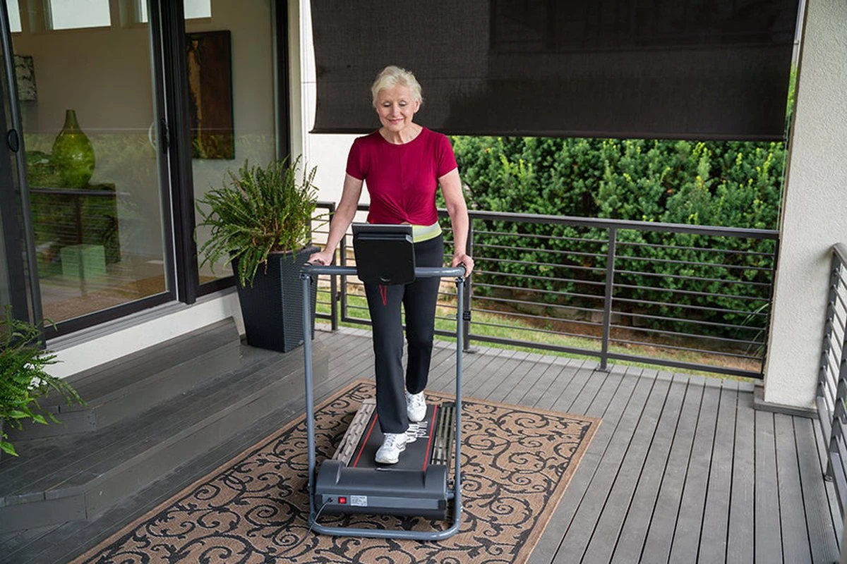 De loopband heeft een antislip handgreep voor een goede ondersteuning tijdens het wandelen. Zo kun je gemakkelijk van snelheid veranderen!