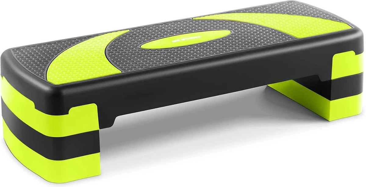 Met de Aerobic step board train je stap voor stap de spieren van je benen. Hiervoor kan de hoogte van de Aërobe stepper in twee stappen worden aangepast aan de lichaamslengte. Een hogere Fitness Step verhoogt tegelijkertijd de intensiteit van de oefeningen. Naast de beenspieren worden ook de billen uitgedaagd door de fitnessaccessoires en bij elke stap optimaal getraind.Het oppervlak en de voetjes van de Aerobic step board zijn antislip. Dit geeft je de zekerheid die je nodig hebt om je oefeningen intensief uit te voeren. De constructie van Kunststof (PP) is ook extreem robuust en veerkrachtig en kan tot 100 kg dragen, zodat je veilig en zwetend kunt trainen met de In hoogte verstelbare stepper. Elke oefening kan comfortabel worden uitgevoerd op het 79.5 x 29.5 cm grote gewatteerde oppervlak. Als je het stepboard na het sporten wilt opbergen, kun je de treden voor de hoogtes onder het board opbergen om ruimte te besparen.