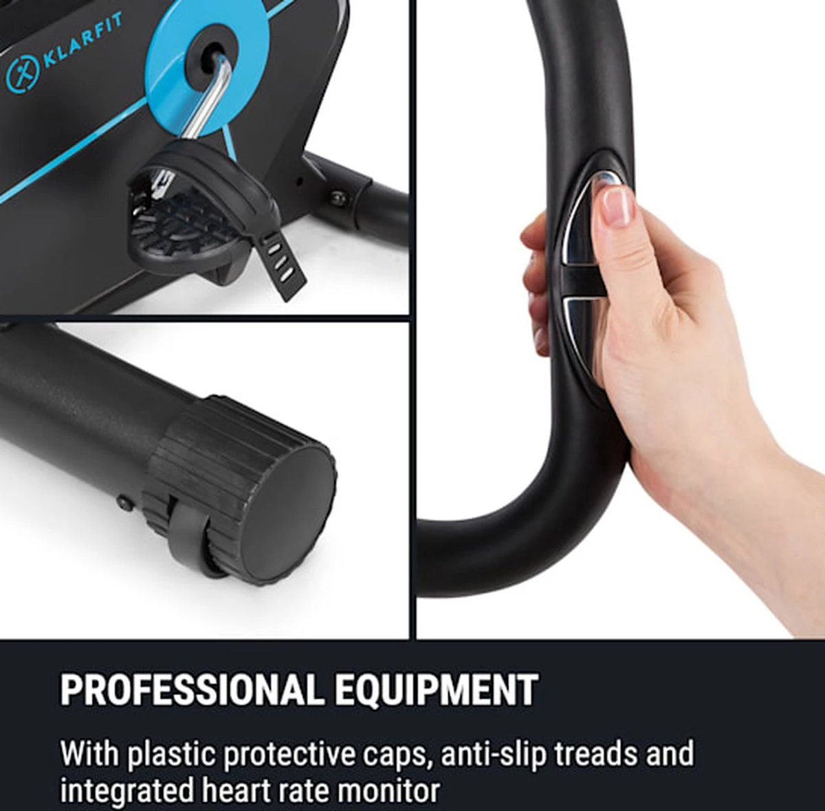 Met de fiets-hometrainer Tauon van Klarfit ben je ideaal uitgerust voor je individuele fitnesstraining thuis. Breng je spieren en je bloedsomloop flink in beweging en train volkomen weersonafhankelijk binnen je eigen vier muren. Als echte hometrainer kun je met de Tauon ideaal benen, billen en rug trainen en aan je uithoudingsvermogen werken. De geïntegreerde trainingscomputer maakt daarbij een doel- en prestatiegerichte training mogelijk: naast de trainingstijd worden snelheid, calorieverbruik, afstand, pols en je totaal afgelegde kilometers op de overzichtelijke LC-display weergegeven. Zo heb je op ieder moment je vorderingen in blik en kun je je optimaal op jezelf en je training concentreren. De vliegwielmassa van 12 kg laat zich dankzij MagResist in 8 standen mechanisch instellen. Met het SilentBelt System train je praktisch geluidloos. Dankzij SmartCardio Studio zorgt de geïntegreerde tablethouder voor de passende ontspanning bij de training. Bekijk met veel gemak je lievelingsseries of push je nog eens extra met je sportplaylist.De grote, slipvrije pedalen zorgen voor een veilig en stevig houvast. Het comfortabele zadel is zowel horizontaal als verticaal instelbaar en laat zich precies aan jouw voorliefde aanpassen. Het geringe gewicht van 20 kg en de twee transportwieltjes maken het verplaatsen en opbergen van de Klarfit Tauon zeer eenvoudig.Start in een fitte toekomst: met de Klarfit Tauon cardio-bike geniet je van alle voordelen van een professionele fiets-hometrainer in je huis.