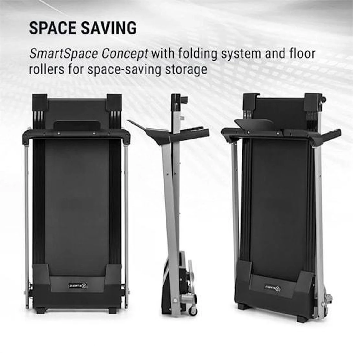 Doordachte techniek voor de beste looptraining! De Klarfit Treado Active loopband is ons meest toegankelijke model voor iedereen die fitness en activiteit in haar of zijn eigen woning wil integreren. Daarbij zorgt hij met zijn moderne techniek en geïntegreerde features voor een aangename thuistraining, onafhankelijk van tijdstip en weer en past door zijn SmartSpace Concept in vrijwel iedere woning.Breng je lichaam in beweging: met de Klarfit Treado Active loopband is dat binnen de eigen vier muren heel eenvoudig mogelijk. Zijn sterke 1.1 pk gelijkstroom motor zet de loopband tot 10 km/h in beweging en brengt zo beginners en profs in gelijke mate tot zweten. Met de stille looptraining op het 360 x 1000 mm grote oppervlak wordt niet alleen de bloedsomloop gestimuleerd, maar ook vet verbrand – ideaal voor nog meer fitness en prestatievermogen alsook een verbeterd lichaamsgevoel.Weten wat loopt: de geïntegreerde trainingscomputer met LCD-touch display en polssensor helpt de prestatiegegevens zoals gelopen kilometers, verbruikte calorieën, snelheid en hartfrequentie niet uit het oog te verliezen en stelt met 12 programma’s een afwisselende looptraining ter beschikking. Daarnaast beschikt het bedieningsgedeelte over een tablethouder om tijdens de training voor ontspanning met video’s & sound te zorgen. Per Bluetooth kunnen niet alleen prestatiegegevens direct aan de tablet, iPad of smartphone worden verzonden en in de iFitShow-app worden geanalyseerd, deze app maakt ook de complete bediening van de loopband mogelijk.Aangezien voor de training na de training is, werd de Klarfit Treado Active loopband helemaal gedesigned volgens ons SmartSpace Concept. Zo kan hij uiterst ruimtebesparend in elkaar worden geklapt en met de geïntegreerde transportwieltjes eenvoudig en snel worden opgeborgen, zodat hij in vrijwel iedere woning past.