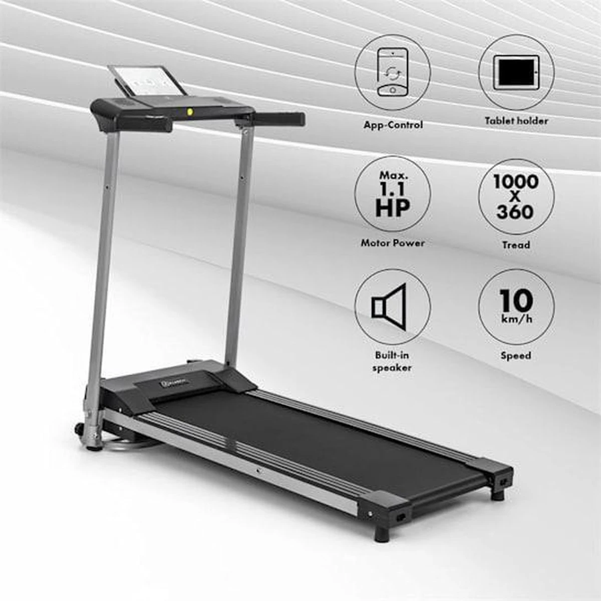 Klarfit Treado Active Loopband – 10 Km/h – 1PK – 36 X 100 Cm – Bluetooth – Trainingscomputer Met Tablethouder – Touch-display