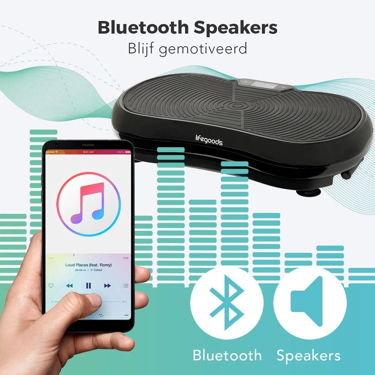 Speel je favoriete muziek af via de ingebouwde speaker en haal net dat beetje extra uit je workout. Je kan de trilplaat eenvoudig koppelen met je Apple of Android apparaat via Bluetooth 5.0. Vervolgens kun je audio afspelen en het volume regelen via je tablet of smartphone. Het geluidsniveau van de trilplaat is door de low-noise technologie slechts 60 dB. Daar hoor je je muziek dus makkelijk bovenuit.