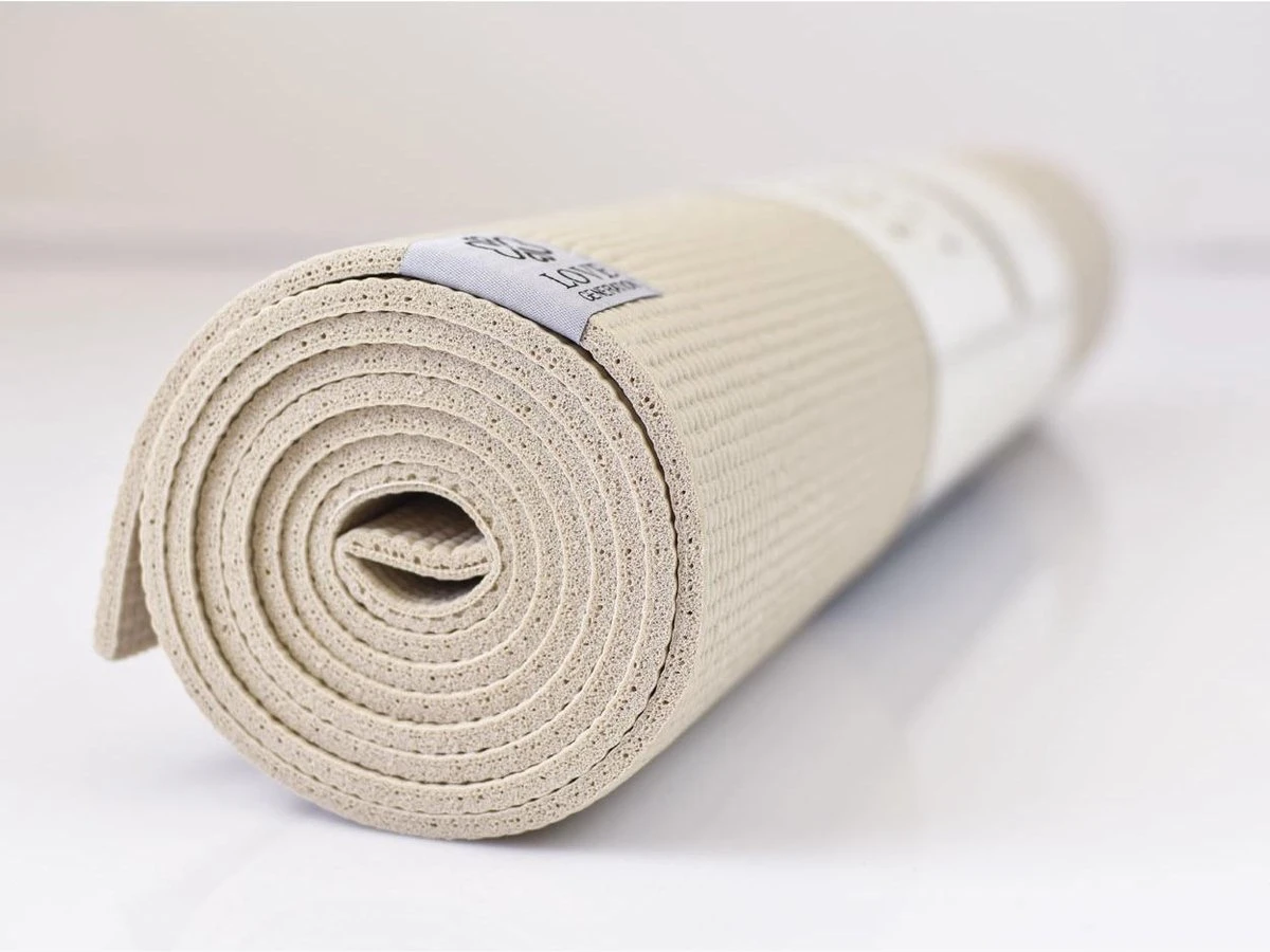 Zandkleurige yogamat van 6mm . Het slijtvaste materiaal geeft je grip, stabiliteit en nét een beetje meer comfort.