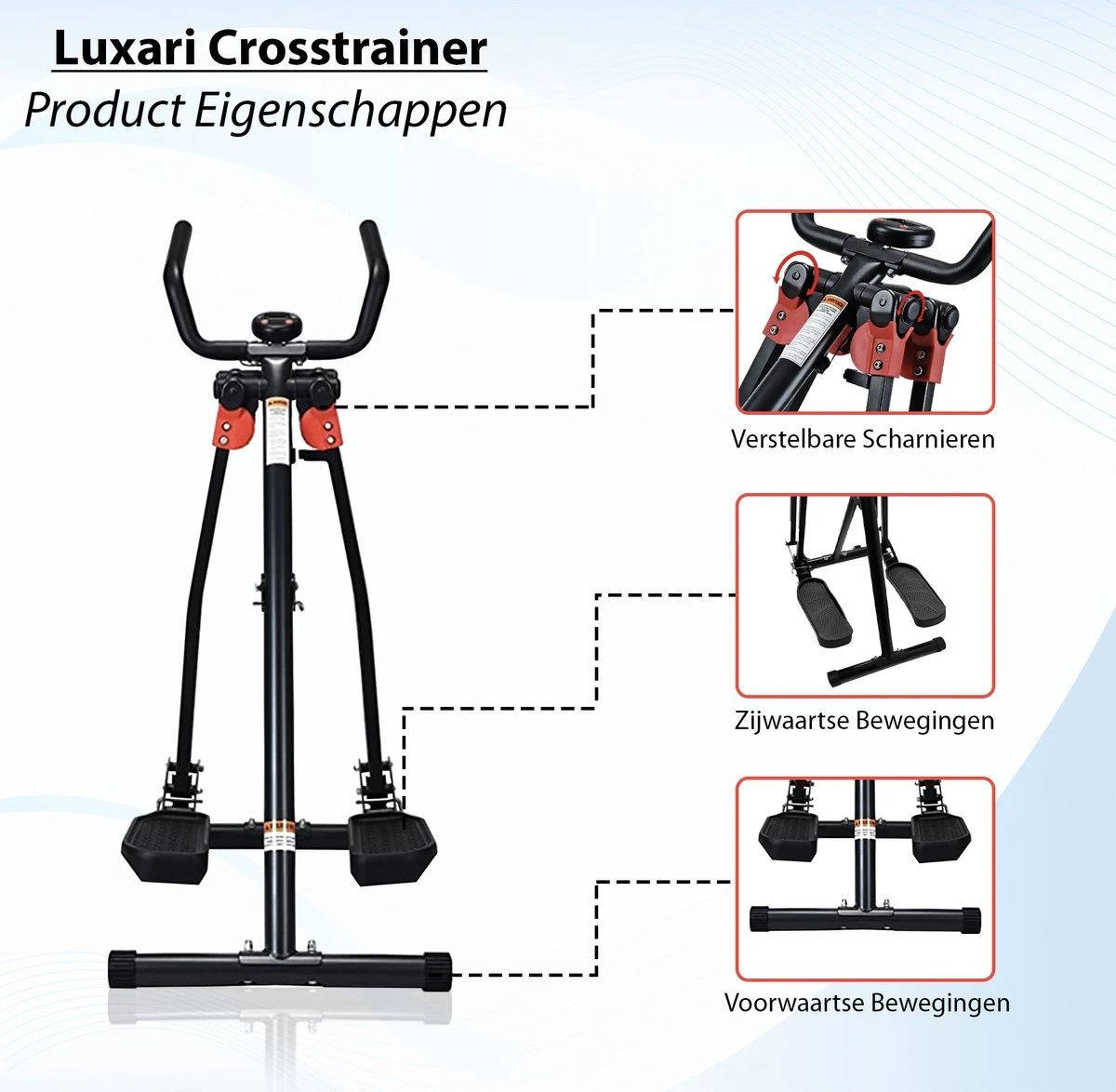 De Luxari Crosstrainer is geïnnoveerd om een zo breed mogelijke variatie aan oefeningen te bieden. De crosstrainer is ook te gebruiken voor zijwaartse bewegingen wat u de mogelijkheid geeft om maar liefst tot 100% van uw beenspieren te trainen.