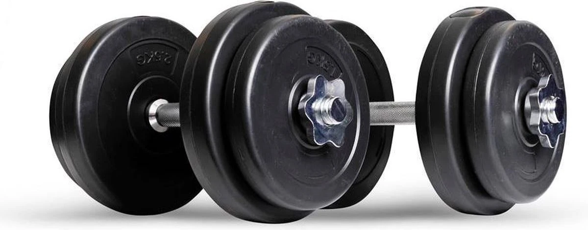 Elke stang weegt 2 kg en is geleverd met 2 kunststof gewichten van 2,5 kg en 2 kunststof gewichten van 1,5 kg. Doordat de schijven in verschillende gewichten meegeleverd worden kun je zelf bepalen hoe zwaar je jouw training wil maken. De schroefsluitingen zorgen ervoor dat jouw gewichten goed op hun plaats blijven, maar zijn wel makkelijk van de stang te verwijderen.