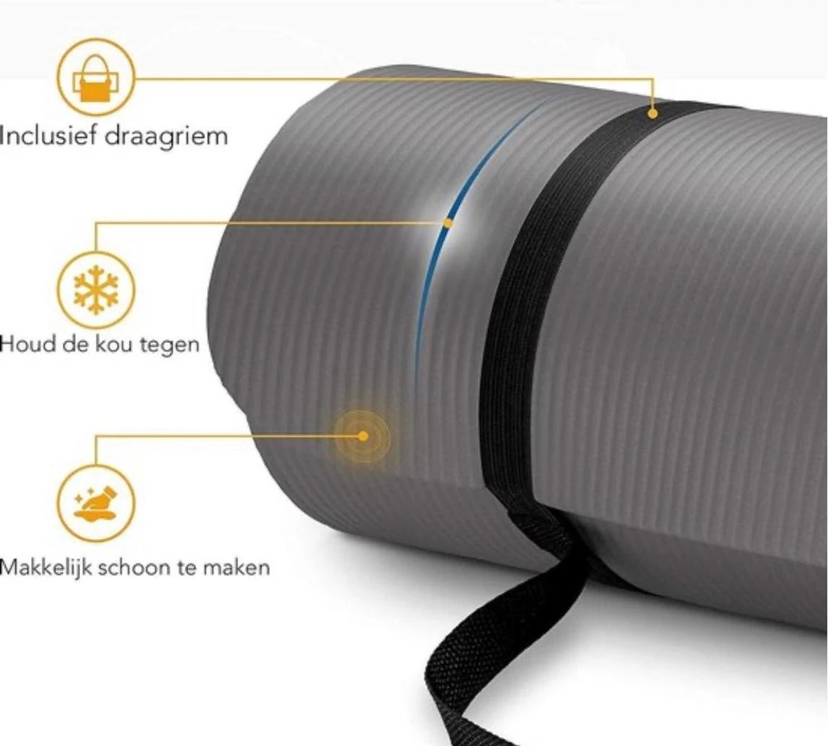 Deze sportmat is ideaal voor het uitvoeren van je fitness, yoga en sportoefeningen. De mat is te gebruiken in de sportschool, thuis of in het park. Met behulp van de handige meegeleverde elastische draagriem kun je de yogamat makkelijk en snel meenemen.