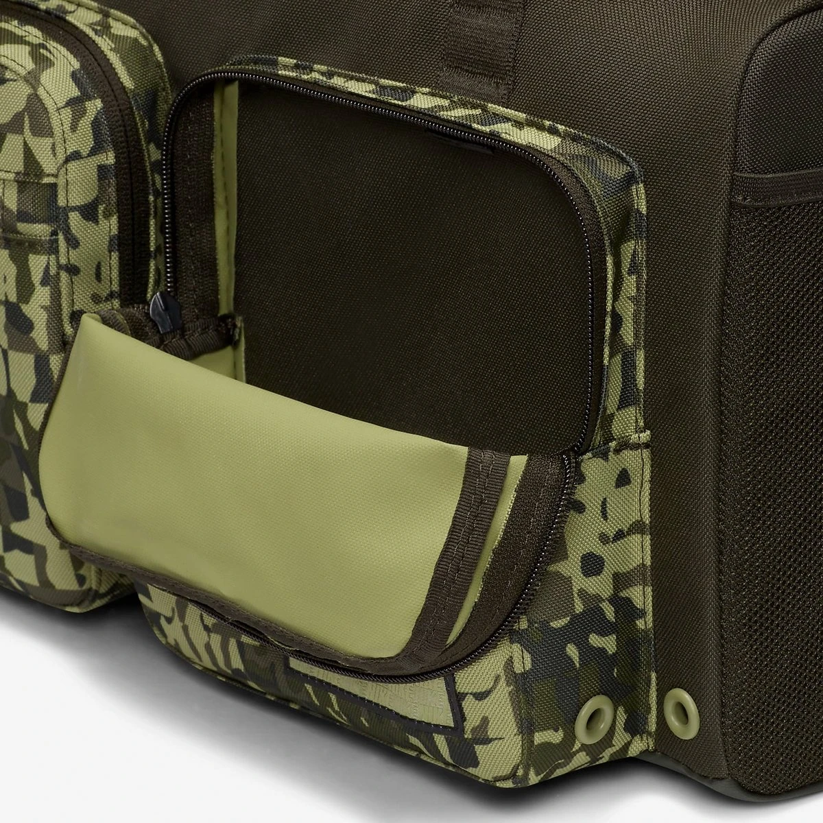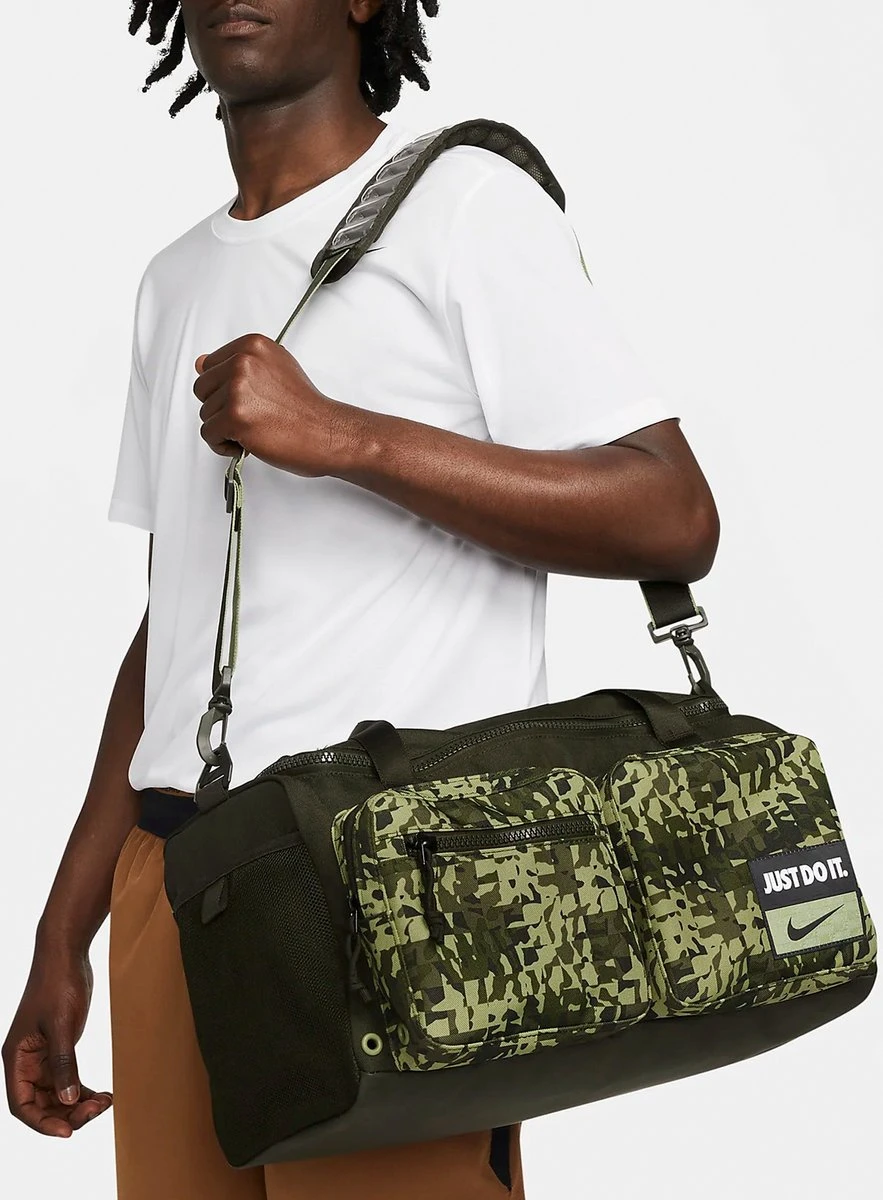 Specificaties: Vakken: groot hoofdvak, drie voorvakjes met ritssluiting en twee steekvakjes van mesh aan zijkanten Schouderbanden: verstelbare en afneembare schouderband/ vaste handvatten Afmetingen: 49 x 23 x 23cm (lxbxh) Kleur: donker groen – groen Materiaal: 100% polyester
