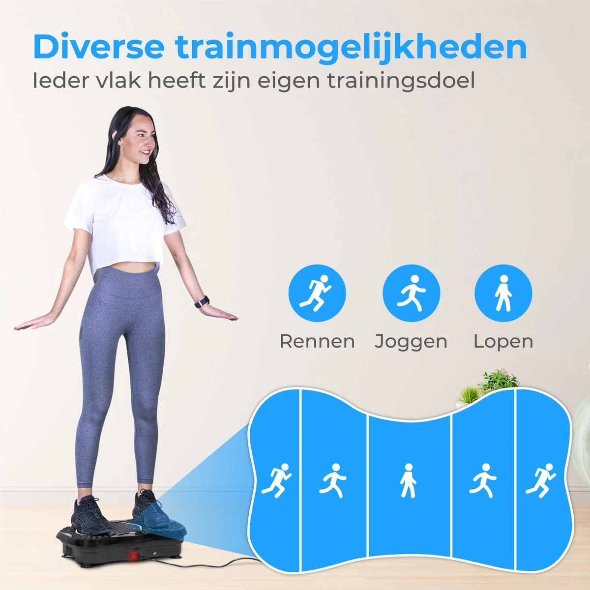 Bij de hometrainer worden 6 verschillende trainingsprogramma geleverd. Hiermee kan jij direct aan de slag om fit/fitter te worden. De trainingsprogramma’s van de fitness trilplaat zijn samengesteld van beginner tot aan gevorderden waardoor iedereen op zijn of haar eigen niveau kan trainen.