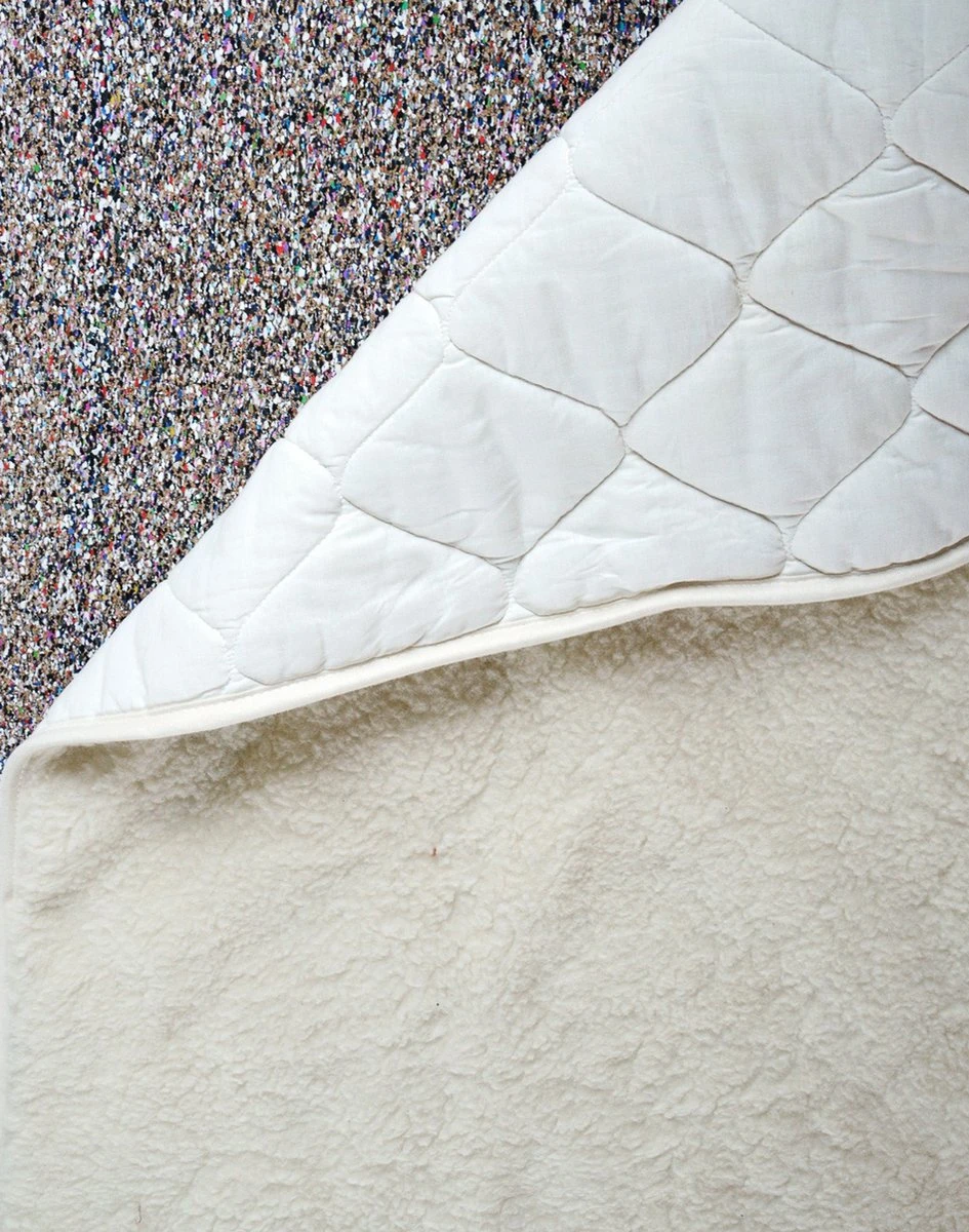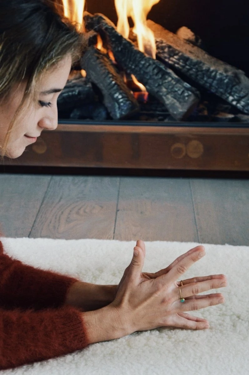 Een extra dikke en praktische wollen fleece mat gemaakt in Europa uit Merinowol & recycled katoen. Ideaal voor rustige yoga (yoga nidra, yin yoga, restorative), meditatie en relaxatie, of gewoon om het lekker warm en gezellig te maken.
