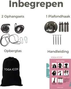 Therapeutische Hangmat YOGA ICON | Aerial Yoga | 280*150cm | Zwart | Inclusief Handige Draagtas En 1 Plafondhaak | Workout | Training En Ontspanning |
