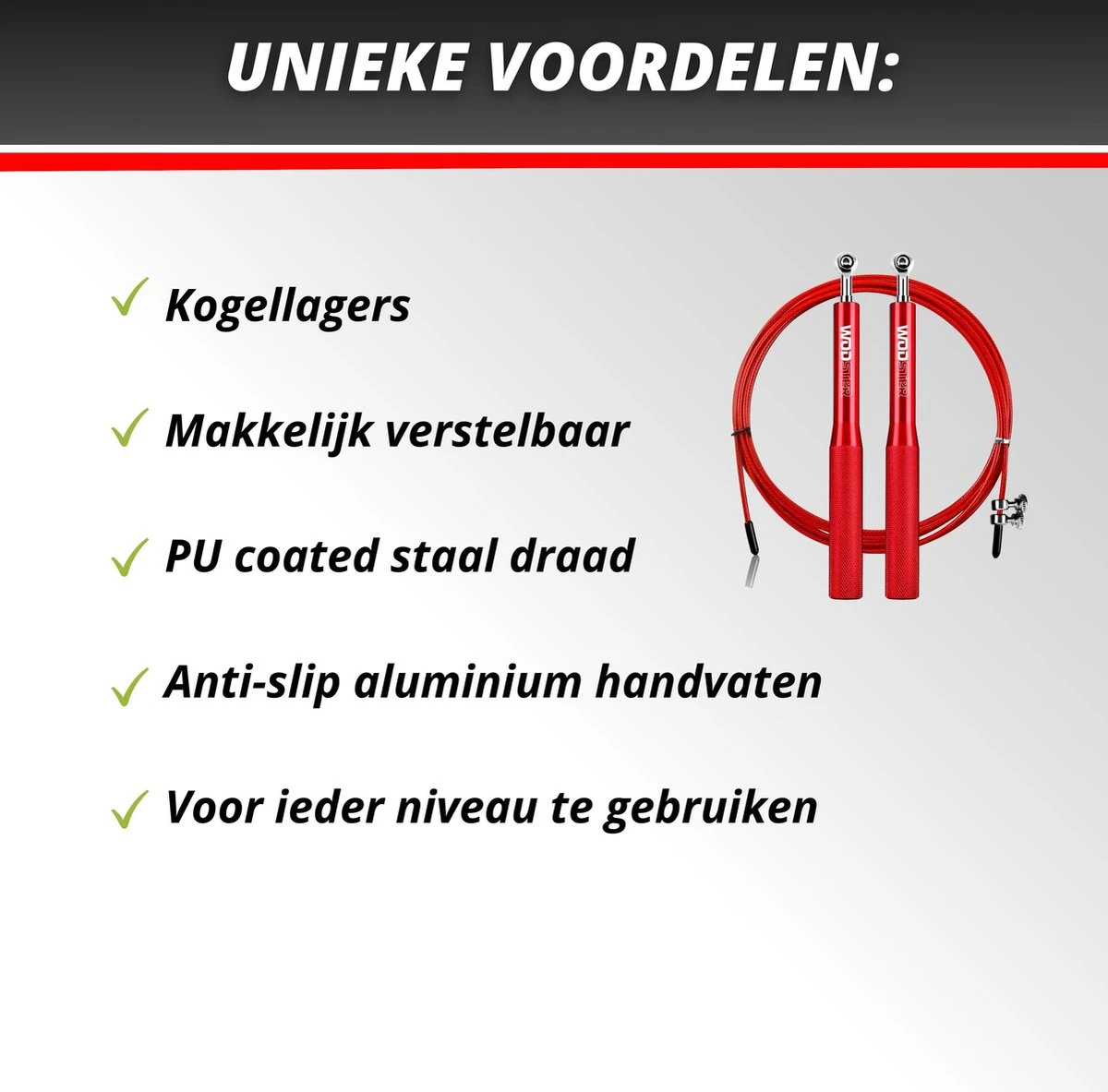 Het springtouw van WODster is geschikt voor iedereen of je nou ervaren of een beginner bent. Het is perfect voor Indoor, Outdoor, MMA, Crossfit, Boksen, Cardio en Fitness!