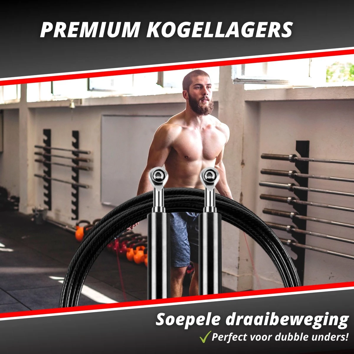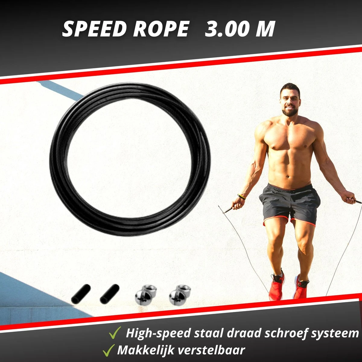 De 3 meter lange highspeed kabel is eenvoudig te verstellen naar elke lengte doormiddel van de verstelschroefjes! Het is zeer vervelend als jij tijdens de work-out vervelende springtouwen moet gebruiken, voorkom nu vervelende springtouwtjes! Deze kabel gaat gegarandeerd niet klitten waardoor jij je work-out effectief kan voortzetten!
