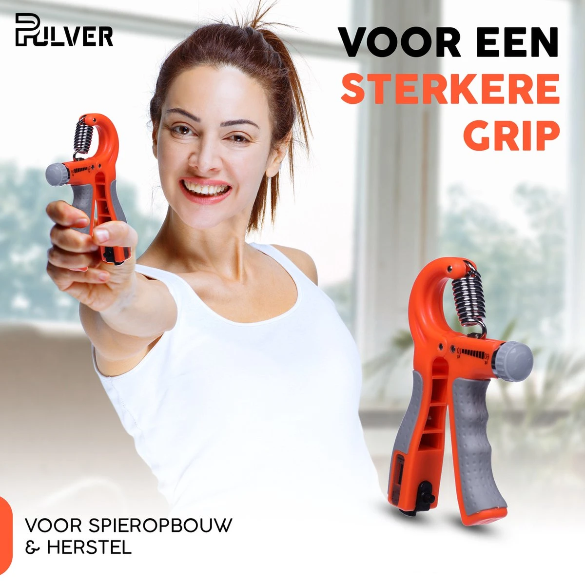 Wil jij jouw grip, polsen of onderarmen versterken? Dat kan met de knijphalter van Pulver. Deze knijphalter is verstelbaar van 0 – 60kg via een draaiknop. En dat is niet alles! Deze knijphalter heeft een teller ingebouwd, de knijphalter houdt dus bij hoeveel herhalingen u heeft gedaan.