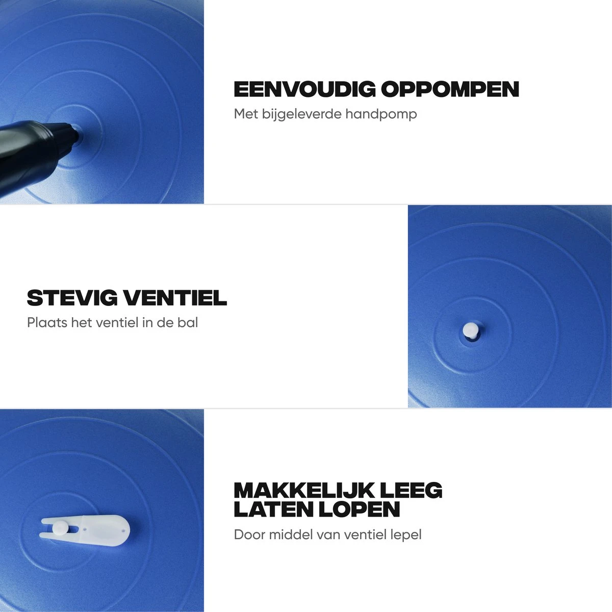 Controleer na het volledig oppompen de diameter van de bal en je zithouding.