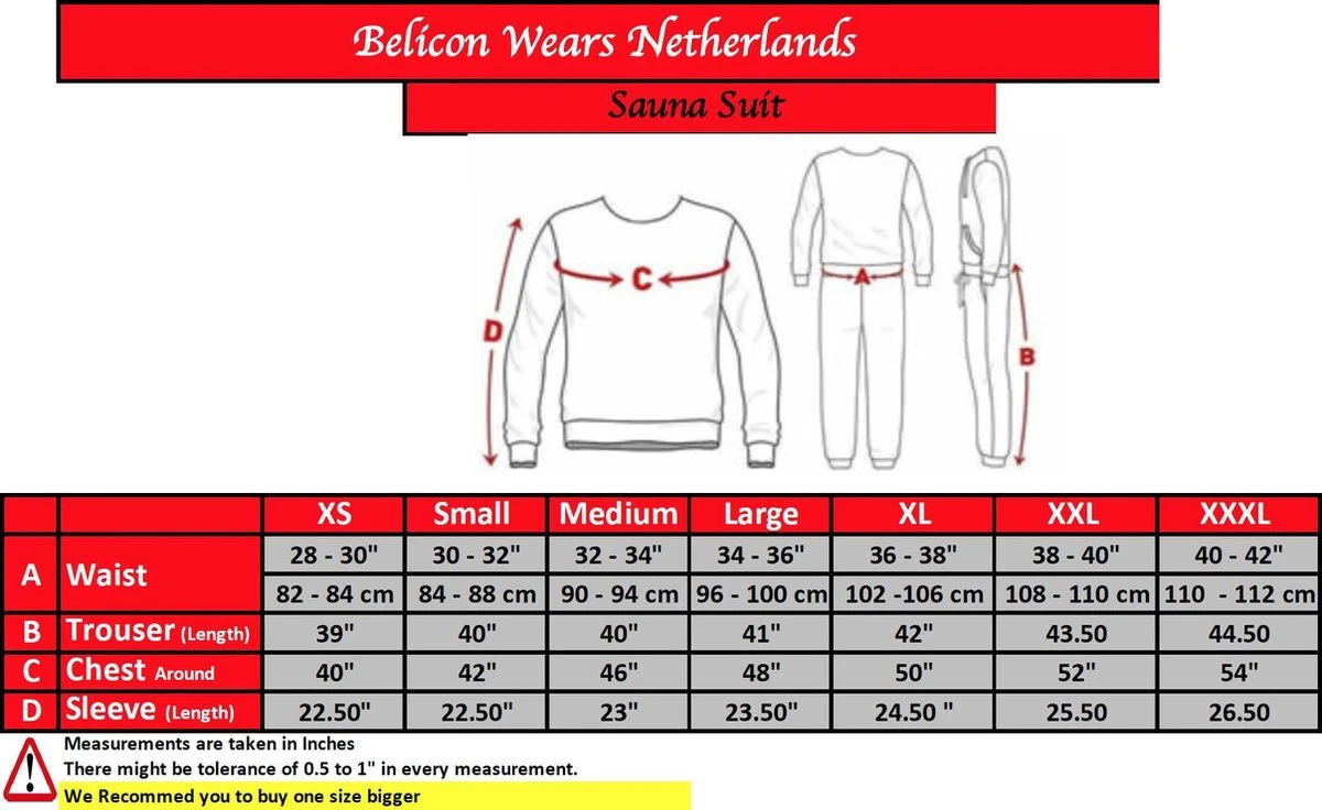 - Elastieken op manchetten van jas en broek houden warmte vast, waardoor deze niet kan ontsnappen, dit moedigt het lichaam op een creatieve manier aan om meer op te warmen, wat resulteert in maximaal gewichtsverlies.