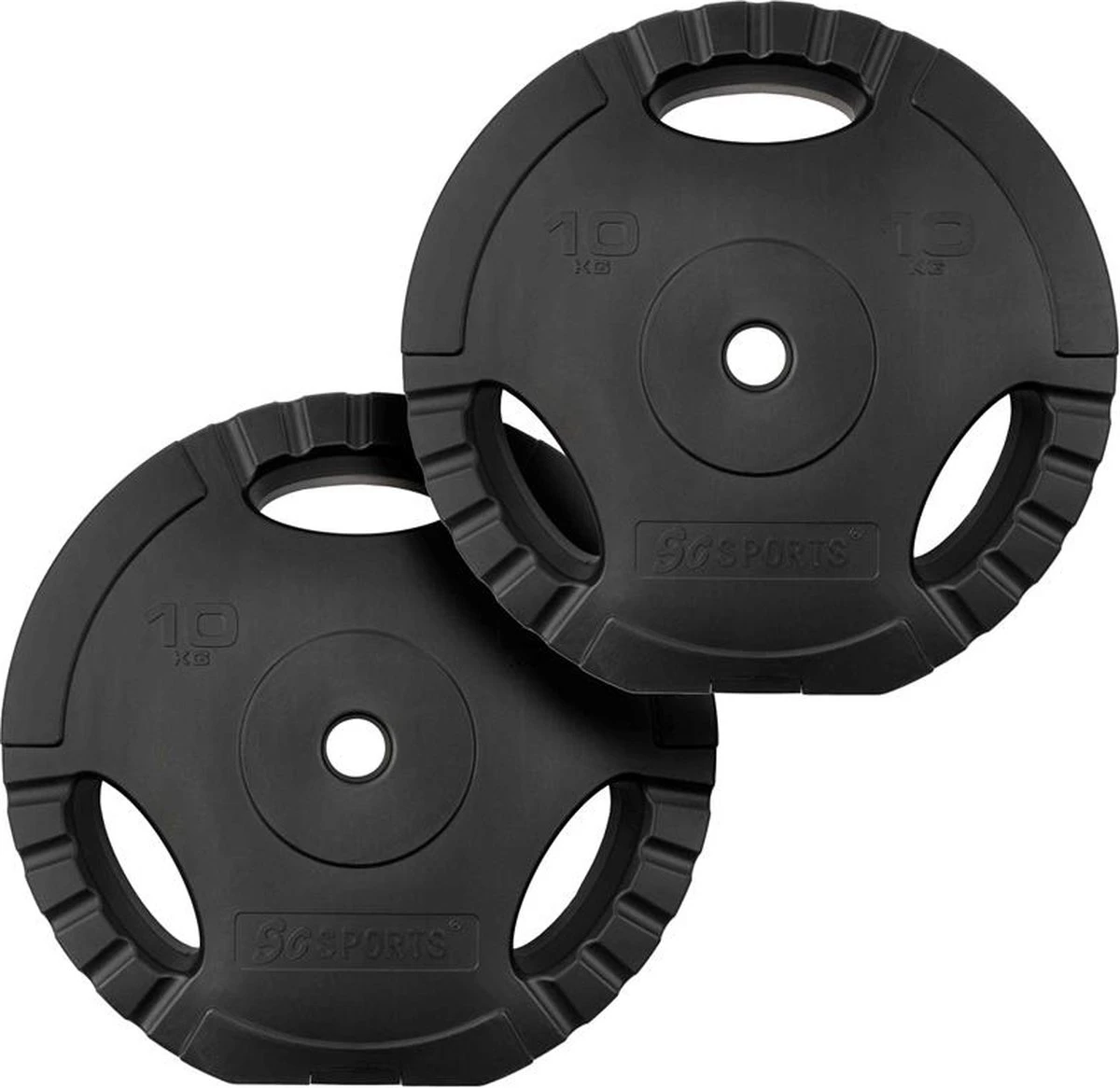 De ScSPORTS kunststof halterschijven met handgrepen zijn geschikt voor fitness oefeningen met en zonder halterstang. Dankzij de handgrepen zijn de schijven makkelijk op te tillen en vast te houden.
