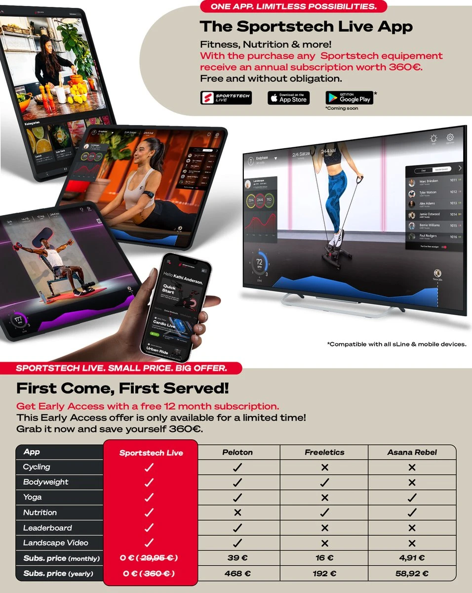 De stepper met swing-functie vervangt twee afzonderlijke fitnessapparaten en biedt op een minimale ruimte een maximale lichaamsbeweging voor beginners, senioren en gevorderde gebruikers. Train het hele lichaam – power ropes en een treksysteem voor de armen, schouders, biceps en nek. Stepper met zijwaartse draai voor de perfecte spieractivatie van de benen, billen en heupen. Het functionele en stabiele ontwerp zorgt voor geluidsarme training.