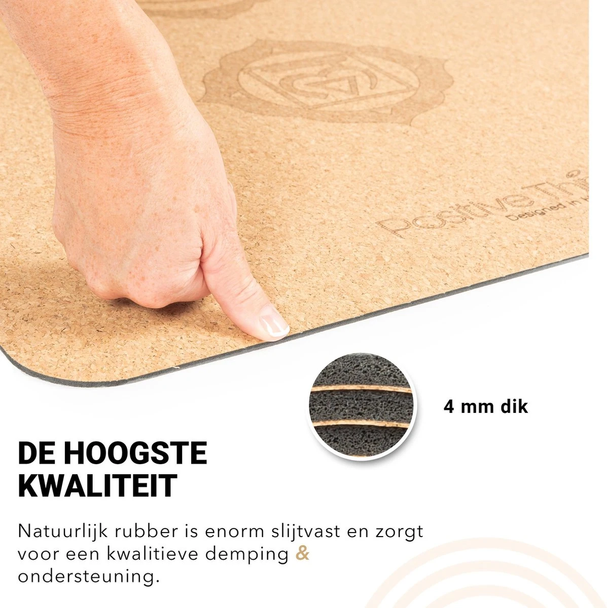 Ben je op zoek naar zeer goede ondersteuning en een zachte ondergrond om yoga poses op uit te voeren? Dan is deze yoga mat van Positive Things helemaal wat je zoekt! Deze yogamat is gemaakt van 100% natuurkurk waardoor deze comfortabel maar toch stevig aanvoelt. Met een dikte van slechts 4 mm is deze yoga mat overal gemakkelijk mee naar toe te nemen. De ronde hoeken zorgen voor optimale grip; deze yoga mat glijdt zeker niet weg tijdens lastige oefeningen! Op deze manier wordt yoga leuker en makkelijker. Het yoga matje draagt bij aan een goede ondersteuning, stabilisatie en een betere uitlijning van het lichaam.