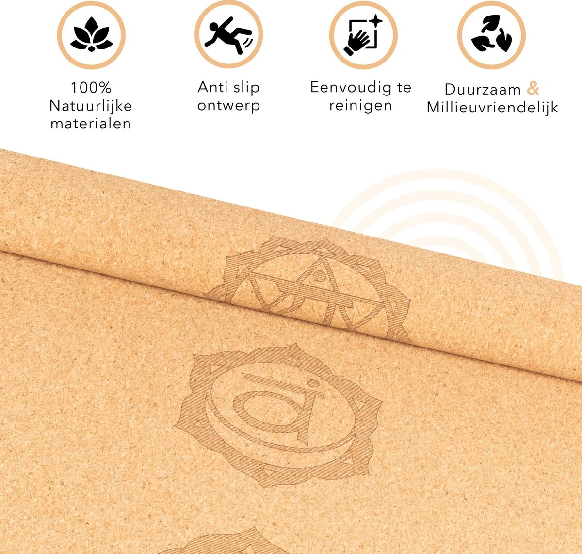 Duurzaam: natuurkurk is een duurzaam materiaal. Deze yoga mat gaat dus veel langer mee dan yoga matten die gemaakt zijn van foam of andere materialen.