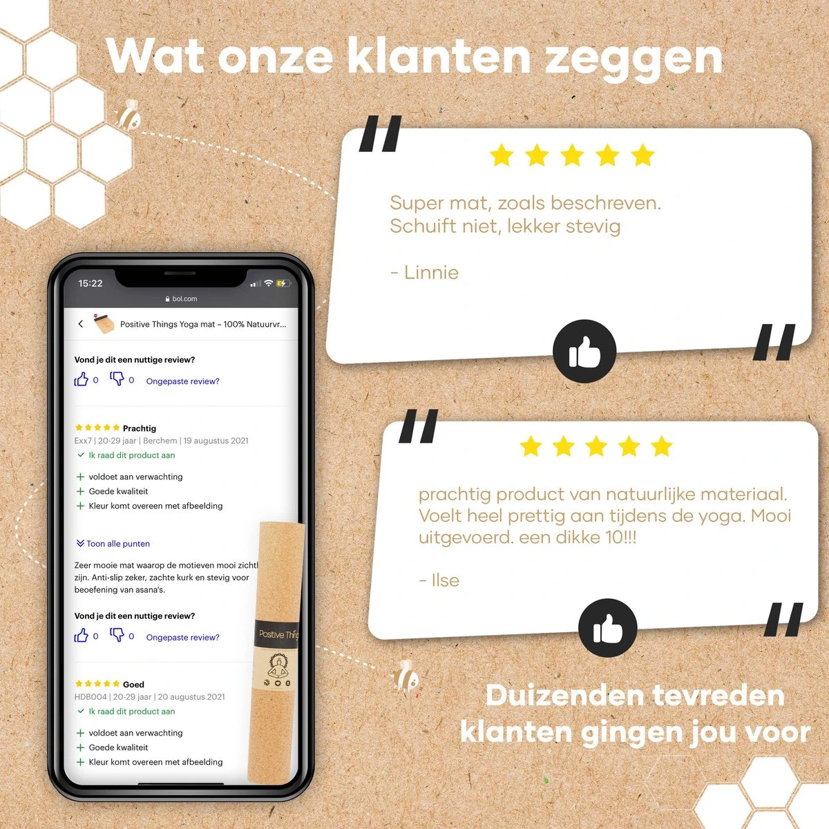 Het materiaal waarvan deze yogamat is gemaakt zorgt ervoor dat deze comfortabel aanvoelt, verder zorgt het ervoor dat de mat 100% biologisch afbreekbaar is. Natuurkurk is een materiaal dat niet snel slijt of kapot gaat. Dit maakt de yogamat van Positive Things extra duurzaam. Je kunt hem dus ook als trainingsmat gebruiken om te ondersteunen bij Fitnessoefeningen.