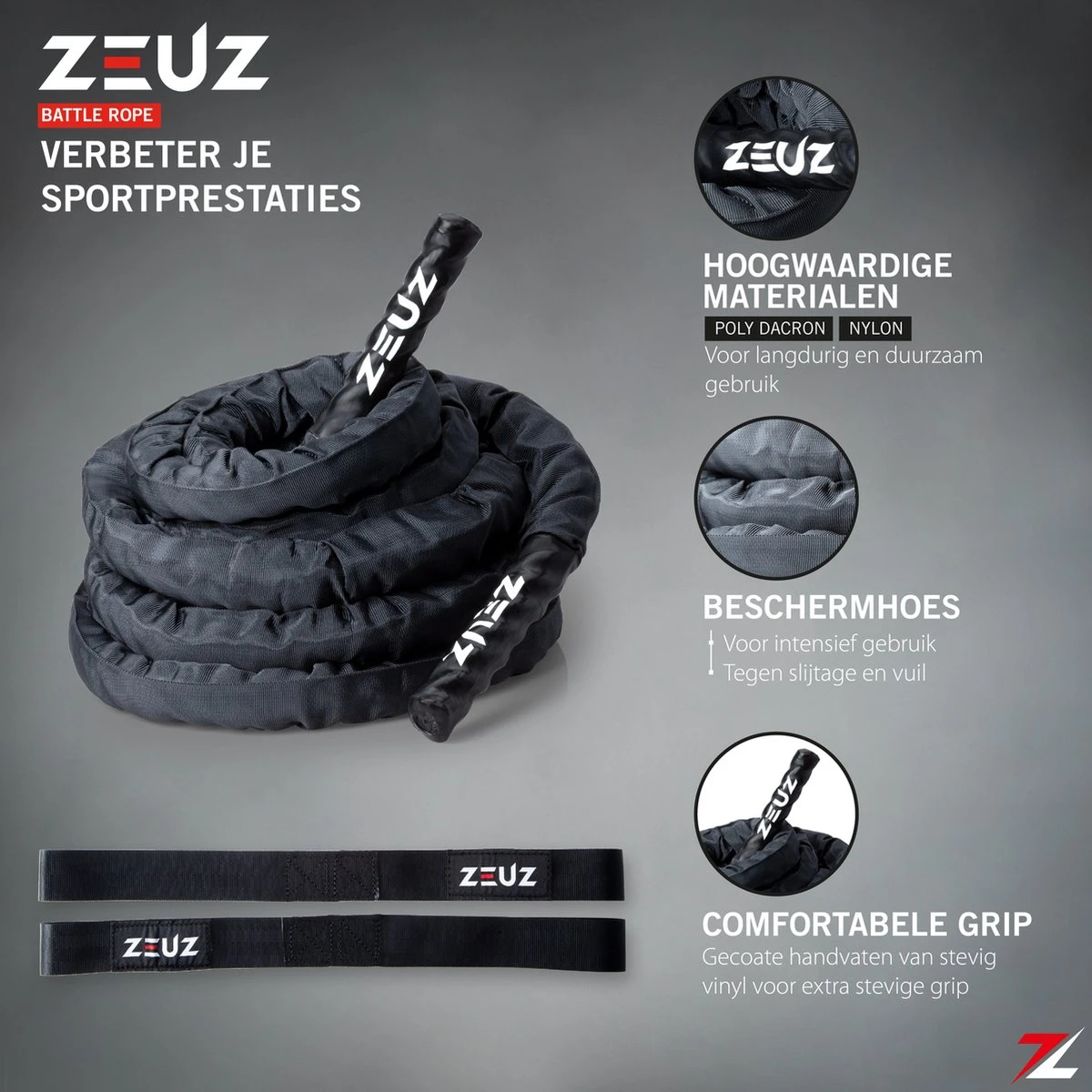 Wil jij je kracht & conditie verbeteren? Dan is deze battle rope van ZEUZ® iets voor jou! Door de vele trainingsmogelijkheden kan je perfect conditie- en krachttraining combineren!